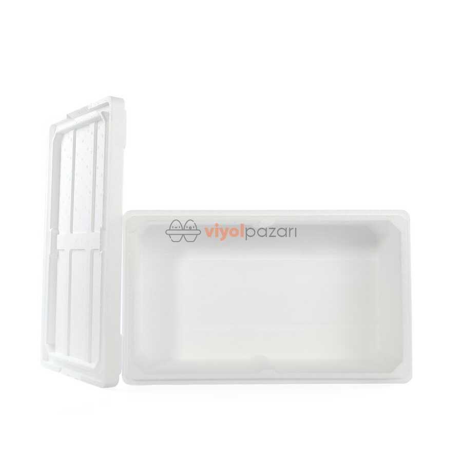 50cm x 40cm x 25.5cm ölçülerinde strofor köpük kutu.