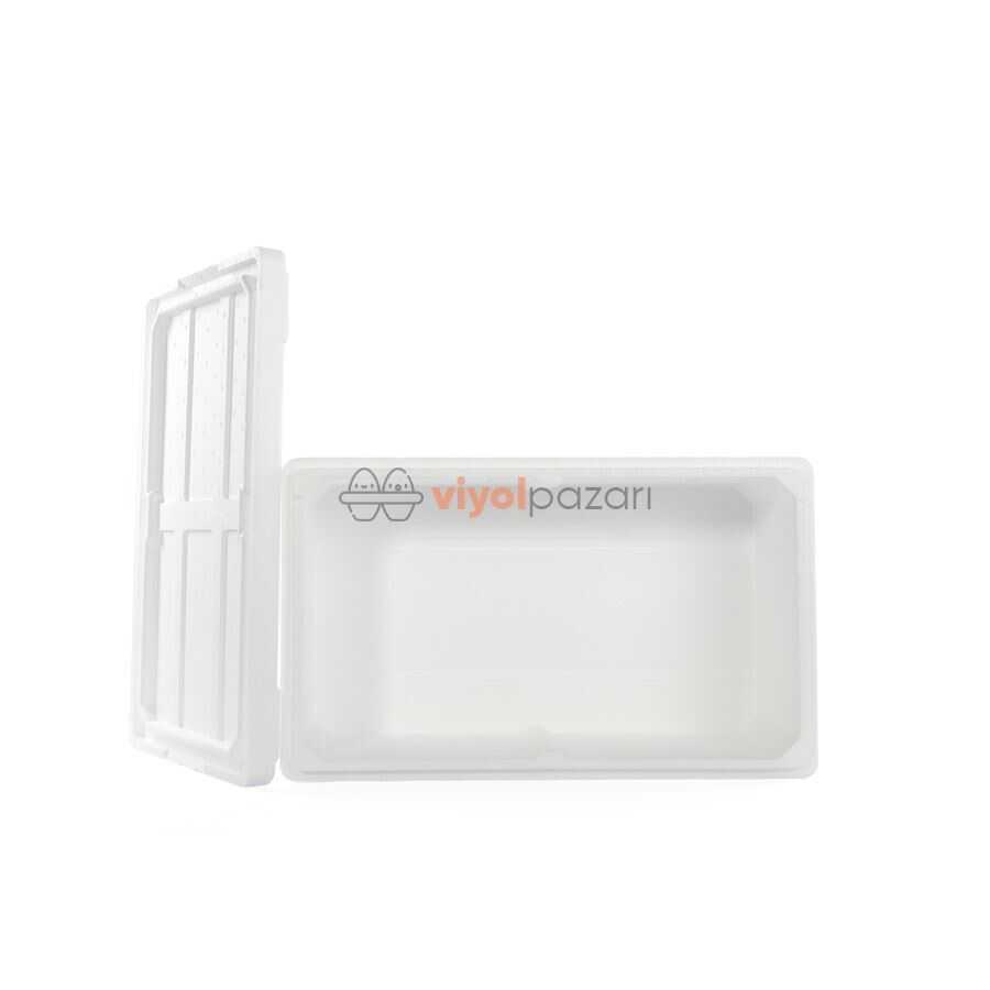50cm x 40cm x 21cm ölçülerinde strofor köpük kutu.
