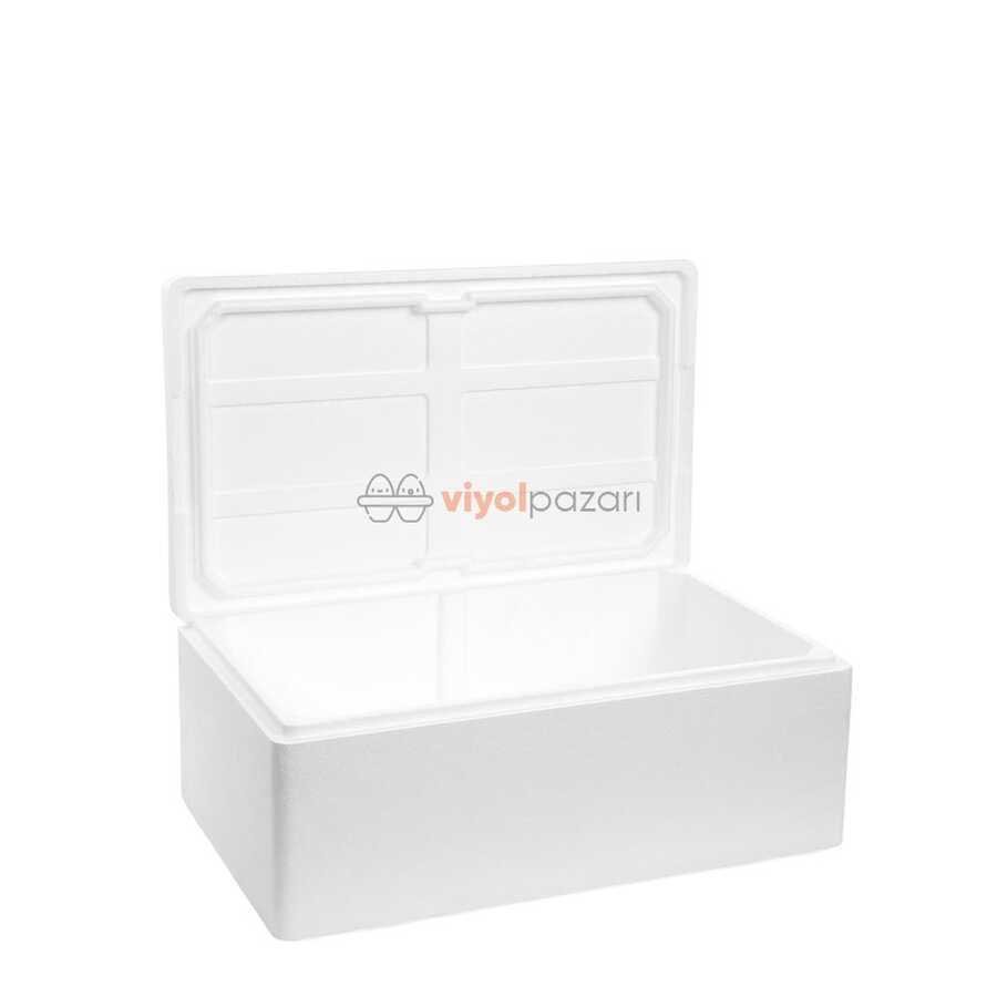 45,5cm x 35,4cm x 15,8cm iç ölçülerinde strofor köpük kutu.