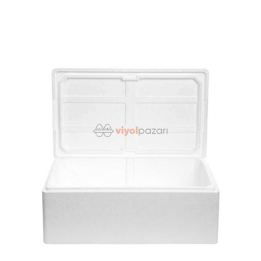 50cm x 40cm x 25.5cm ölçülerinde strofor köpük kutu.